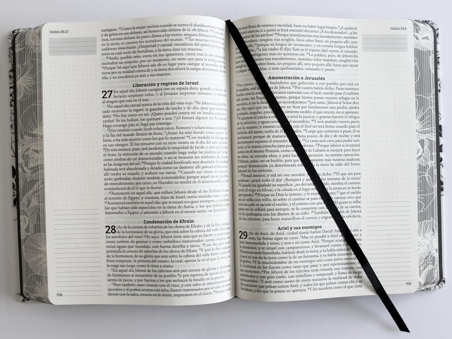 Biblia RVR 1960 de Apuntes Gris y Floreado